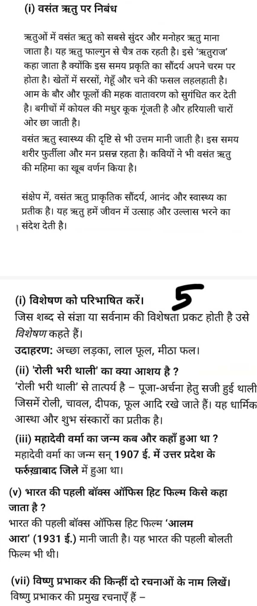 Class 9th Hindi half yearly Exam Objective+ Subjective 2025